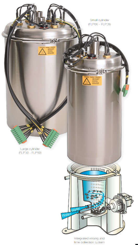 При эксплуатации с умягчённой или водопроводной водой содержащиеся в воде минералы и соли осаждаются. Интегрированная система промывки и улавливания извести поднимает эти отложения, создавая вихревое движение во время частичной очистки от шлама, и они удаляются мощным шламоотводящим насосом. В результате значительно снижается количество частиц, которые могут оседать на фильтре.