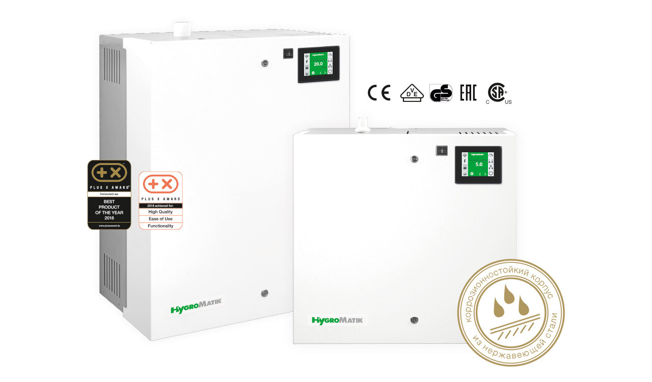 Паровые увлажнители воздуха HygroMatik, адаптированные для применения в судовой технике, помещаются в корпуса из коррозионно-стойкой легированной стали. Для увеличения срока службы на них дополнительно наносится порошковое покрытие. Компактные установки обеспечивают гигиеничное увлажнение паром, не содержащим минералов, в рамках систем отопления и вентиляции. Увлажнители разрабатываются и изготавливаются в Германии.