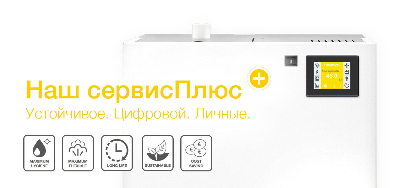 Паровые увлажнители являются центральным элементом паровой бани в зонах спа и велнеса. При этом используется парогенерирующее оборудование, которое обеспечивает относительную влажность до 100%. Производство и регуляция гигиеничной влажности воздуха являются предпосылкой для хорошего самочувствия и оздоровления пользователей. Компания HygroMatik предоставляет долговременные решения по увлажнению воздуха для профессионального использования в различных зонах спа и велнеса.