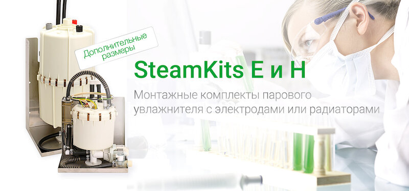 Монтажные комплекты HygroMatik StandardLine «набор E» и «набор H» разработаны специально для удобной интеграции в ваши системы. Монтажный комплект «набор Е» для исполнения с электродами выпускается в пятьи типоразмерах для паропроизводительности от 2 до 65 кг/ч, а монтажный комплект «набор H» для исполнения с нагреательными элементами — в трёх типоразмерах для паропроизводительности от 2 до 50 кг/ч.