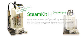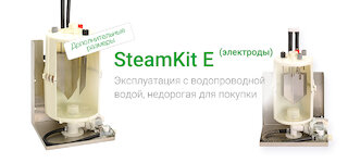 Монтажные комплекты «набор Е» и «набор Н» оптимально подходят для эксплуатации с обычной водопроводной водой (до 15 немецких градусов жёсткости). Набор H также можно использовать с деионизированной водой. В этом случае производство пара непрерывно, без продувки, с высокой точностью управления и практически без технического обслуживания.